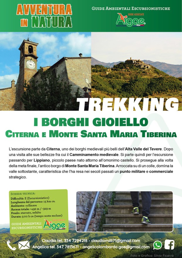 L’escursione parte da Citerna, uno dei borghi medievali più belli dell’Alta Valle del Tevere. Dopo una visita alle sue bellezze fra cui il Camminamento medievale. Si parte quindi per l’escursione passando per Lippiano, piccolo paese nato attorno all’omonimo castello. Si prosegue alla volta della meta finale, l’antico borgo di Monte Santa Maria Tiberina. Arroccata su di un colle, domìna la valle sottostante, caratteristica che l’ha resa nei secoli un punto militare e commerciale strategico.